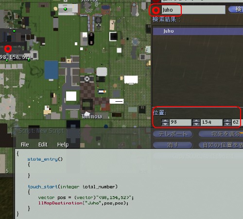 Function: llMapDestination(シム名, 位置, 予約)
